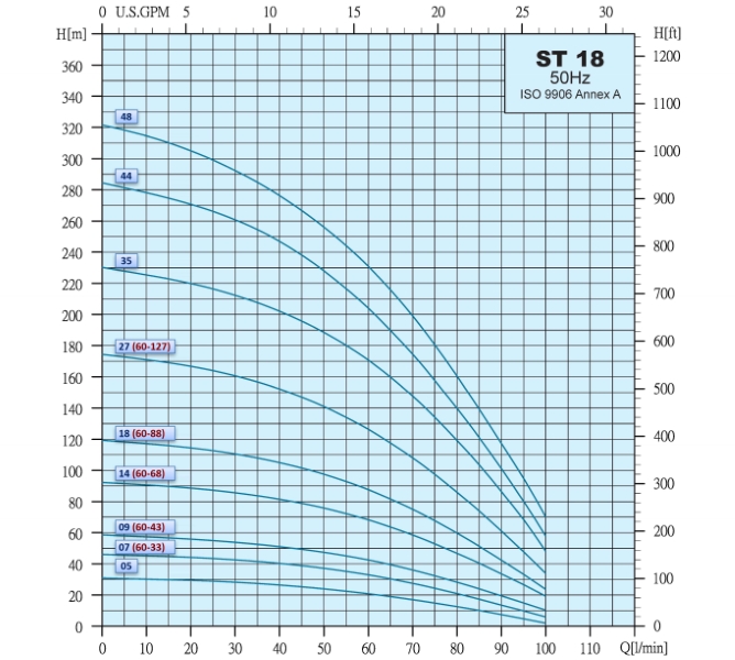 Ponorné čerpadlo DYN 60-43 predstavuje výkonné riešenie optimalizované pre vyšší prietok vody pri zachovaní štandardného tlaku. Srdcom zariadenia je kvalitný taliansky elektromotor s výkonom 0,75 kW, ktorý poháňa odolnú hydrauliku typu ST. Tento model je navrhnutý tak, aby dodával až 100 l/min (6 m3/h), pričom jeho nominálny pracovný bod (60 l/min pri 43 m) presne zodpovedá potrebám väčších domácností a závlahových systémov. Konštrukcia s plávajúcimi kolesami z Norylu a nerezovým plášťom AISI 304 zaručuje dlhú životnosť aj v prostredí s výskytom piesku.