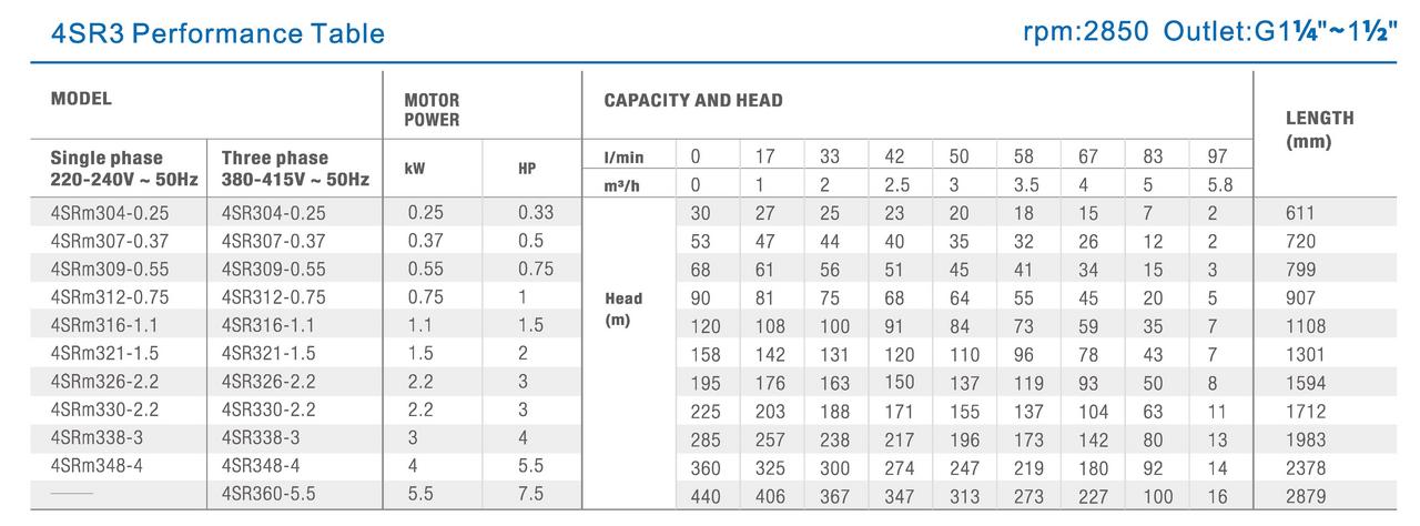 JIADI 4SRM 309 je 4" ponorné čerpadlo s výkonom 0,55 kW, určené pre čerpanie vody z vrtov a studní s priemerom od 100 mm. Vďaka hydraulike s plávajúcimi obežnými kolesami z Norylu zvláda prítomnosť piesku do 80 g/m3 a ponúka dlhú životnosť. S celonerezovou konštrukciou, zväčšeným výtlačným hrdlom (6/4") a 20 m káblom je ideálnym riešením pre rodinné domy a zavlažovanie.