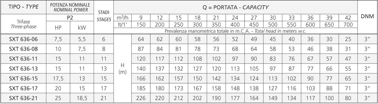 Speroni SXT 636-08 S/S je profesionálne 6" celonerezové ponorné čerpadlo s výkonom 7,5 kW, určené pre civilné a priemyselné vodovody. S maximálnym prietokom 700 l/min a výtlakom 87 metrov zabezpečuje spoľahlivú distribúciu vody, napájanie protipožiarnych systémov a veľkoplošné zavlažovanie. Robustná konštrukcia z ocele AISI 304 garantuje vysokú odolnosť a dlhú životnosť aj v náročných prevádzkových podmienkach.