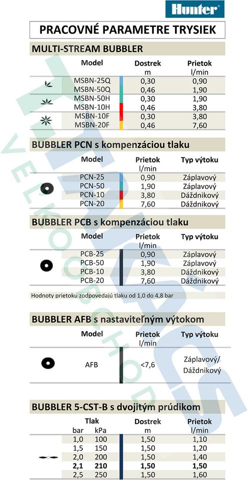 • Kompatibilita: Závit vhodný pre všetky telesá Hunter Pro-Spray a bežné výsuvné postrekovače s vonkajším závitom na výsuvníku.