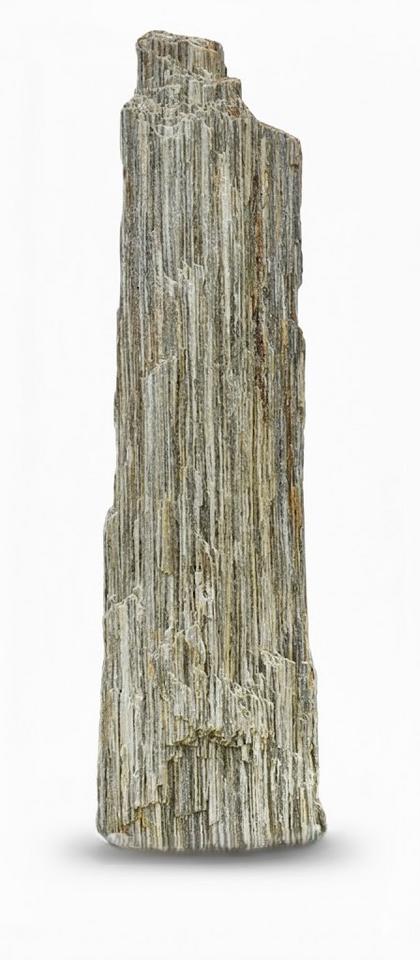 Tento solitérny stĺp z ruly (gneis) vyniká svojou prirodzenou vrstvenou textúrou a špecifickou úpravou spodnej časti. Na rozdiel od surových monolitov má tento kus precízne zrezanú podstavu, ktorá umožňuje jeho priame a stabilné osadenie na pripravený vodorovný podklad. Prírodná hra šedých a strieborných tónov v kombinácii s vertikálnym smerovaním kameňa vytvára v záhrade neprehliadnuteľný umelecký prvok.
