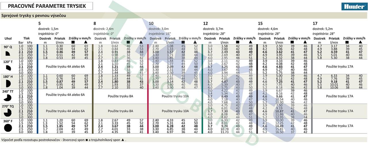 Séria trysiek Hunter Pro Fixed Nozzles je navrhnutá tak, aby poskytovala maximálne spoľahlivé a presné riešenie pre zavlažovanie plôch s pevne stanoveným uhlom. Vďaka robustnej konštrukcii a vynikajúcej povesti v oblasti výkonu sa tieto trysky stali obľúbenou voľbou profesionálnych inštalatérov. Konfigurácie trysiek Pro Fixed zabezpečujú rovnomernú distribúciu vody zo všetkých strán, čím eliminujú suché miesta a zabezpečujú zdravý trávnik.