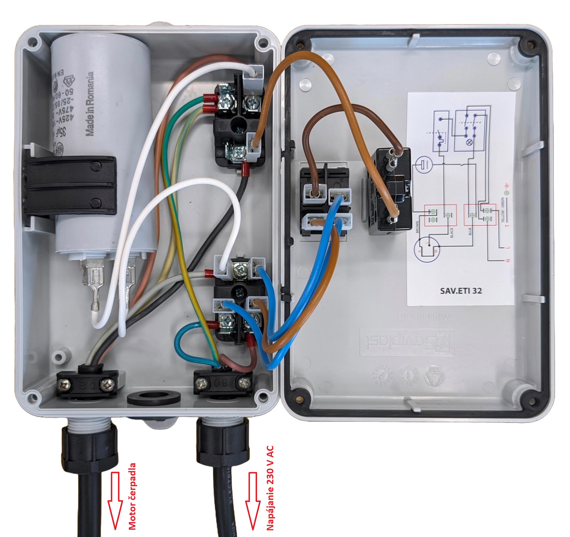 Rozbehová skrinka 0,75 kW (35 µF / 7 A): Ovládanie a ochrana pre ponorné čerpadlá